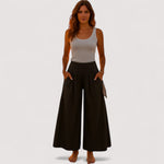 • Coupe flatteuse : Taille haute et jambes larges pour un look confiant et allongé.