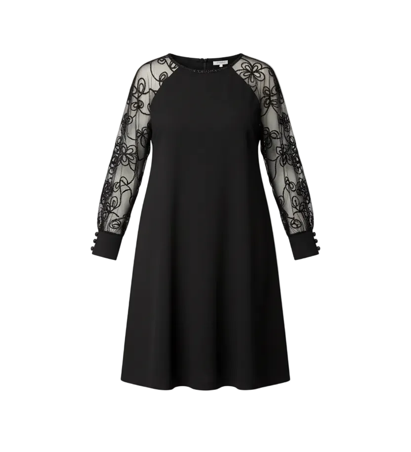 Milena™ | Robe noire élégante avec manches en dentelle