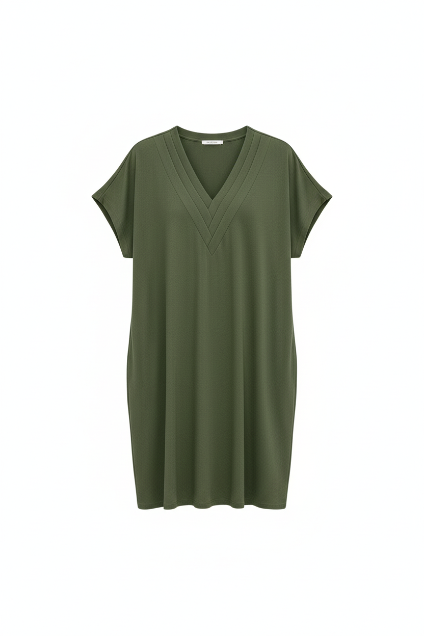 Cette robe raffinée allie simplicité et élégance pour un look intemporel qui convient parfaitement à toutes les occasions, du travail aux soirées spéciales.