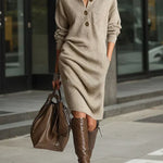 Polyvalente et facile à porter, cette robe est idéale pour les journées casual, le travail ou les moments conviviaux où une tenue confortable et élégante est souhaitée.