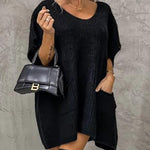 Francesca Robe Tricotée pour Femme – Maille Douce avec Col en V, Coupe Décontractée, Manches Courtes et Poches Avant