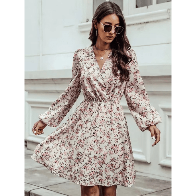 • Design: Mini robe fleurie avec taille cintrée et col en V