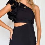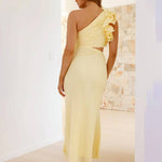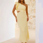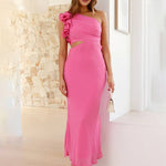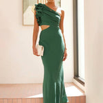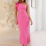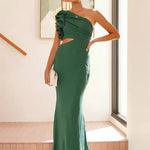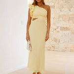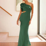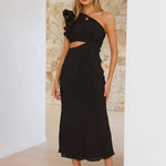 • Design: Robe longue à une épaule avec découpes et finition soignée