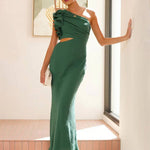 Shamine Robe de Soirée Femme – Longue Robe Asymétrique à Une Épaule avec Découpes Élégantes et Sans Manches