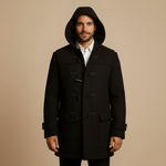 Sa capuche intégrée et sa fermeture distinctive à boutons en corne renforcent son caractère authentique, tandis que la coupe longue apporte une protection supplémentaire contre les éléments. Un manteau polyvalent au style affirmé, pensé pour une garde-robe raffinée et durable.