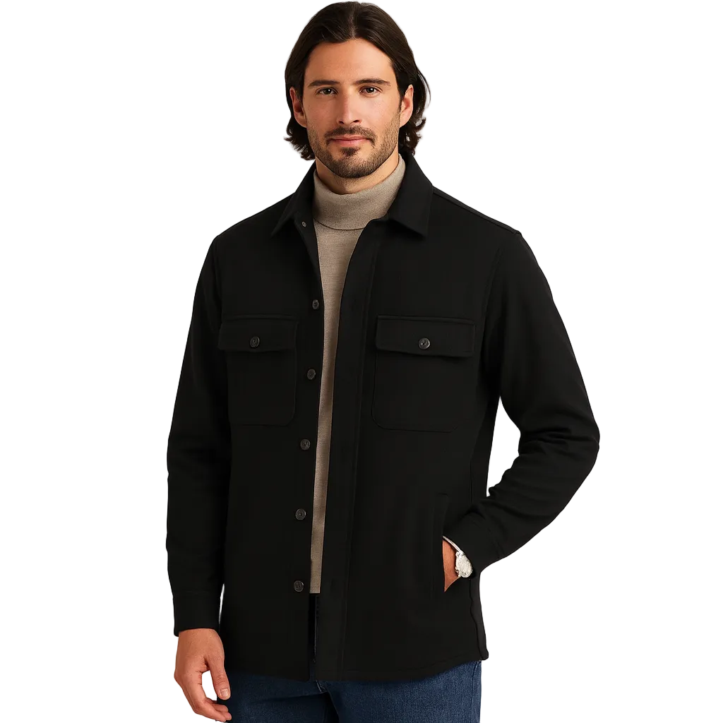Noir Élan Overshirt Homme – Veste Chemise Casual Chic en Coton Mélangé Coupe Regular