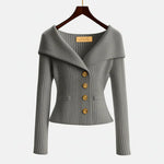 Arvery Pull Femme Off-Shoulder – Pull Côtelé Élégant avec Boutons Dorés