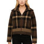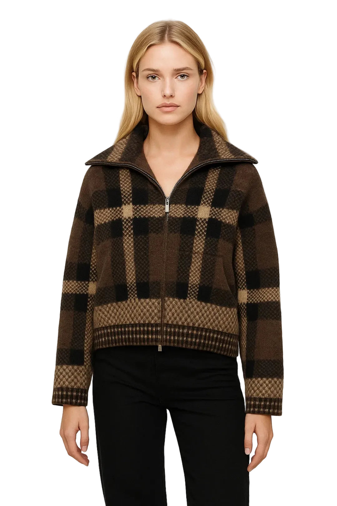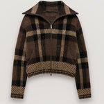 Barbie Veste Courte Femme – Motif à Carreaux Structuré, Fermeture Zippée & Style Mi-Saison