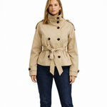 Emerald Trench Femme Court – Double Boutonnage, Ceinture Taille, Veste Automne Élégante
