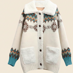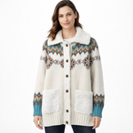 Ingrid Gilet d’Hiver Femme – Cardigan Douillet à Motif Norvégien avec Col Polaire et Boutons