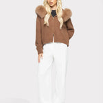 Janelle Veste Femme – Veste en Laine Élégante avec Capuche Doublée de Fourrure