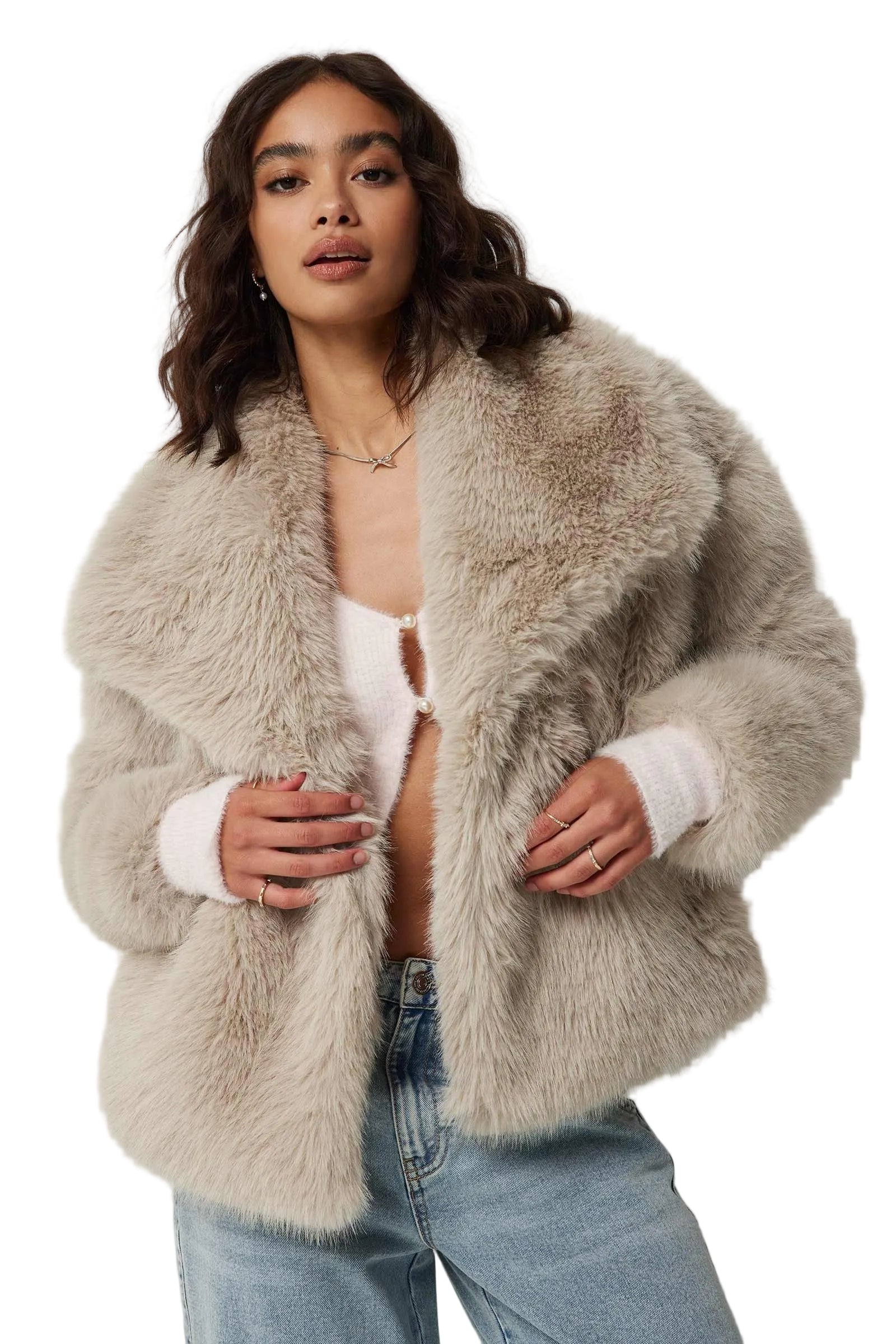 Lene Manteau Femme Faux Fur Luxe – Veste Courte Douce avec Revers Large & Coupe Moderne
