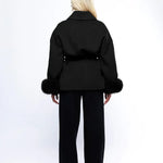 Le Manteau Luxe Livia pour femme combine élégance raffinée et confort hivernal dans une silhouette féminine et soignée. Les manches ornées de faux fur apportent une touche sophistiquée, tandis que la doublure douce offre une chaleur agréable lors des journées froides.