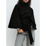 • Design : Manteau cape avec col montant et ceinture ajustable