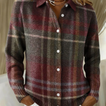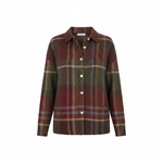 La blouse Emily a une palette de teintes rouges profondes, de vert mousse et de brun chaud. Le motif à carreaux lui donne un aspect calme et équilibré. Les boutons blancs et le col classique assurent une finition intemporelle.